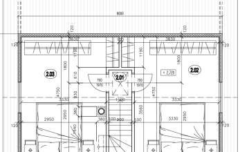 Srubová chata s obytným podkrovím a terasou o rozměrech 8 * 5m.