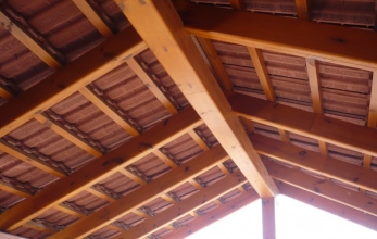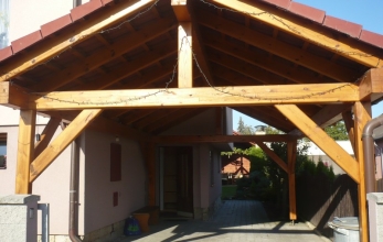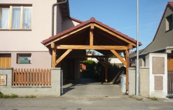 Garážové stání vyrobené z hoblovaných lepených trámů.