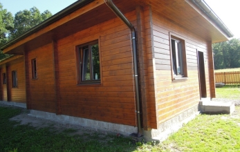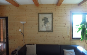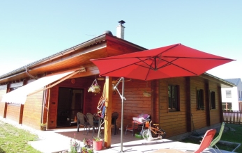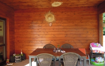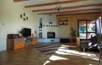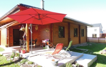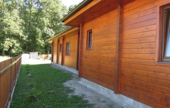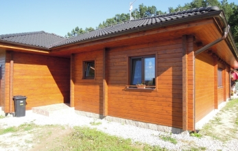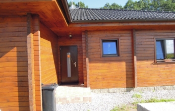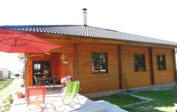 Rodinný přízemní srubový dům s terasou a garáží o dispozici 5+1.